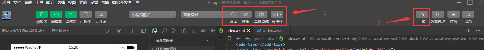 5.开发完成后,选择全部清理缓存>编译 没有报错之后,在进行真机调试,没有报错,可上传代码